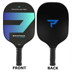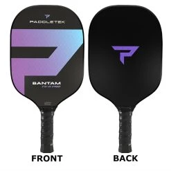 This new Bantam TS-5 Pro shares a lot in common with its original TS-5 brethren. They both come with Paddletek’s limited lifetime warranty. They both are authentically made in the USA, and they most use trademark Paddletek polymer core technology. The new TS-5 Pro features a textured face fiberglass hybrid face with a UV coating to prevent breakdown and fading. The design comes with a black background which is covered with the Paddletek “P” and has a mesh-like pattern within its outline. The paddle name is displayed to the lower right.