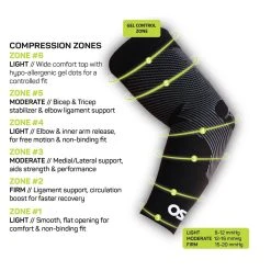 The OS1st AS6 Performance Arm Sleeve uses a six-zone compression system to boost circulation and muscle recovery. It can be used to reduce elbow pain, support the forearm and strengthen tendons. The construction uses a thin and moisture-wicking material that prevents damp skin, plus the addition of silver ion technology minimizes odor while providing antimicrobial properties.