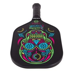 The Vulcan Paddle Candy Sugar Skull Paddle has a colorful Day of the Dead-inspired design that will set you apart visually in addition to providing all-court playability. Using the same construction as Vulcan’s V510, this paddle was made with a modern shape that balances weight between the head and handle. It offers a nice blend pop, touch and strength with its carbon fiber face and polymer core.
