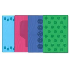 The Pickleball Microfiber Towel has texture on both sides and measures 24″ long with a 16″ width. It comes in a variety of bright colors so it stands out against the rest of your gear and you can spot it easily. The material is durable and can withstand repeated washing in cool to warm water.