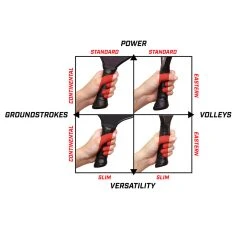 The Raw Carbon Fiber 14 Pickleball Paddle offers a 16.5″ overall length and 7.5″ wide face on the end of their XR-23 handle, which arrives wrapped in a performance-tac cushion grip. The XR-23 handle offers an ergonomic 23-degree slant that helps you reload quickly and add more spin to all of your shots. This grip is available with a small butt cap for eastern grips and a large butt cap for continental grips.