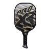 ProXR Signature Graphite Paddle. It’s a bit longer, narrower, with a 14mm (0.55″) thick core, and more drastically tapered neck. The increased thickness creates more control across the entire paddle face, but especially near the corners and edges. This results in better shot consistency so you can focus on where you want to return a ball on the court, instead of where it needs to connect against your paddle. The more highly tapered neck moves the focus of the power further away from your hand, resulting in fantastic power from deep in the court. The specialized XR-23 ergonomic handle lends itself to the brand’s fast reload speeds, easier spin implementation, and powerful groundstrokes.