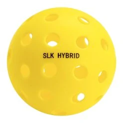 The SLK Hybrid Indoor/Outdoor Pickleball is made with 40 precisely spaced holes to create predictable flight and bounce. They allow easy passage of air through the pickleball but its weight helps to reduce interference by wind. The design has a bright yellow color that stands out for easy tracking against just about any background or court surface color.