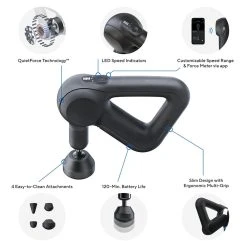 The Theragun Prime Wireless Percussive Therapy Device releases tension and allows for faster muscle recovery with its simple yet powerful features. Hold the massager by its comfortable ergonomic grip and experience up to 30 lbs. of force directed right to the areas you need it most. This design penetrates 60% deeper into your muscles than the average massager on the market, so you truly feel the difference in recovery. Its QuietForce technology and brushless motor generate noise comparable to that of an electric toothbrush, so massage sessions won’t disturb your environment.