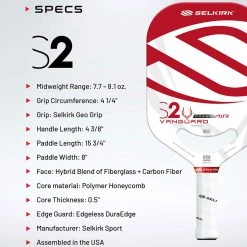 The VANGUARD Power Air S2 sports a 4-3/8″ long handle, wrapped in Selkirk’s popular Geo Grip, to go with a 15-3/4″ overall paddle length. And at a full 8″ wide, the S2 shape is the perfect shield to enhance your blocking defense. The paddle features 360° Proto Molding which reinforces a consistent feel, despite the open-throat design, even when your human side shows and you mis-hit the ball. Weight range tolerance is from 7.7 to 8.1 ounces, with a weight average of 7.9 oz. For players developing a complete game, the VANGUARD Power Air S2 allows you to utilize all the tools in your arsenal.