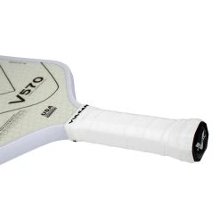 Prioritizing spin in the game of pickleball is here to stay, and the Vulcan V570 FRP paddle brings it, just like you. To impart spin and boost power despite the thick 16mm (0.63″) thick core, this paddle uses a “raw fiberglass” face with TNT surface technology (increases dwell time of the ball on the face). The 11″ x 7.5″ raw fiberglass face offers a livelier feel and a brighter sound than its carbon fiber counterpart, the Vulcan V570 CF2. The poppy performance allows this thick core paddle to keep up with the modern, aggressive game while the TNT surface offers exceptional tac for cut shots and control near the kitchen.